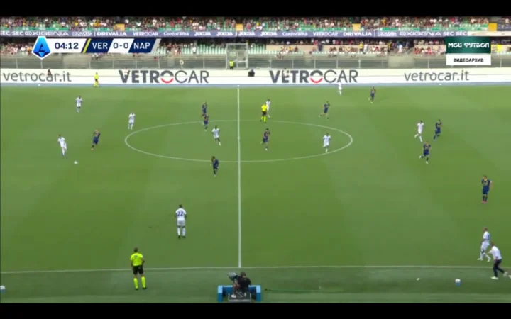Nel secondo tempo invece i veronesi alzavano la loro pressione, finendo per mettere in difficoltà il possesso napoletano e diventando sempre più pericolosi ogni volta che riconquistavano palla.